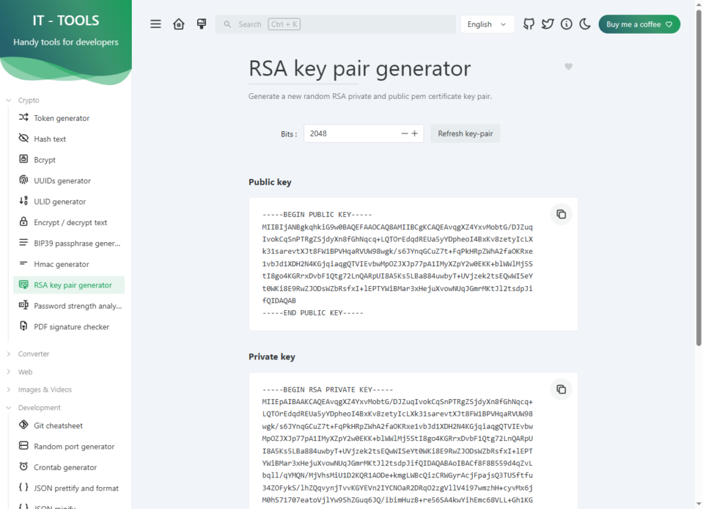 - RSA key pair generator: Most business servers use SSH key pairs instead of usernames and passwords.
